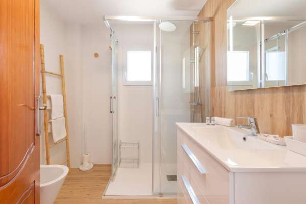 Tiene 2 dormitorios dobles, 1 baño con ducha, salón y 2 terrazas e la planta principal